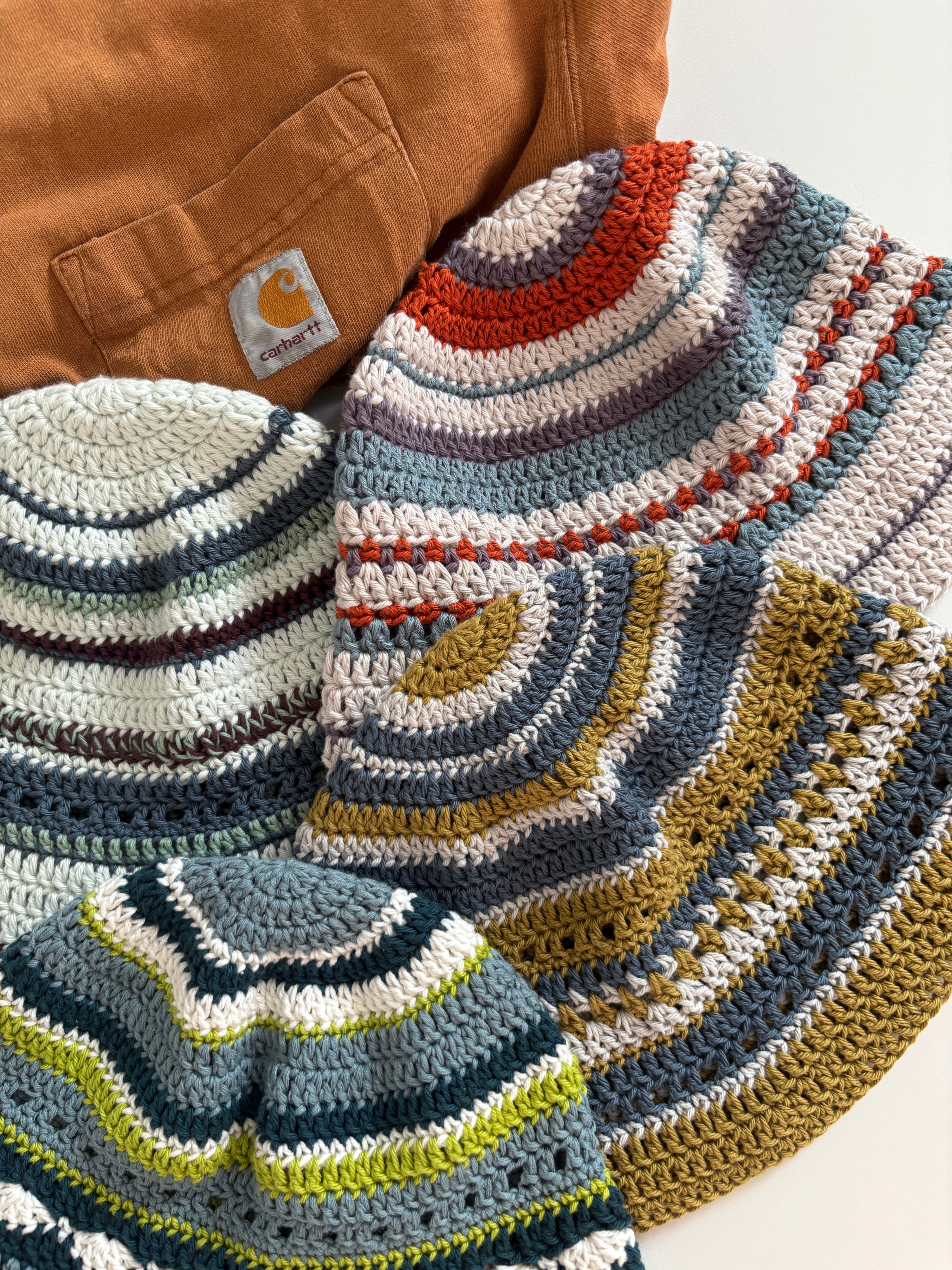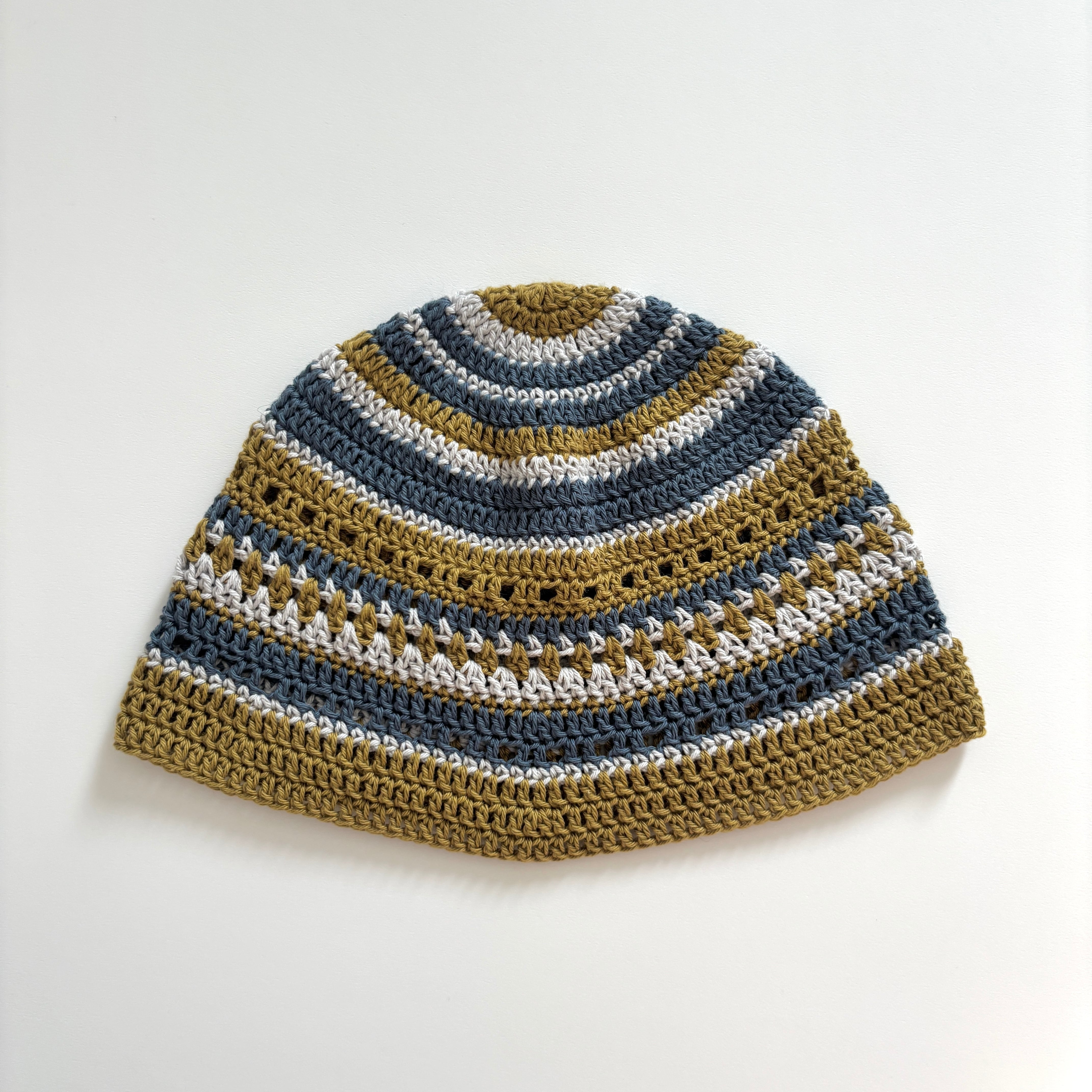 編み模様の変化と配色で立体感を出し、個性のあるデザインに仕上げました。