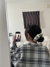 ※デザイン上、二重巻きでの使用ができない為、このシュシュのみで髪をまとめることは難しいです。
