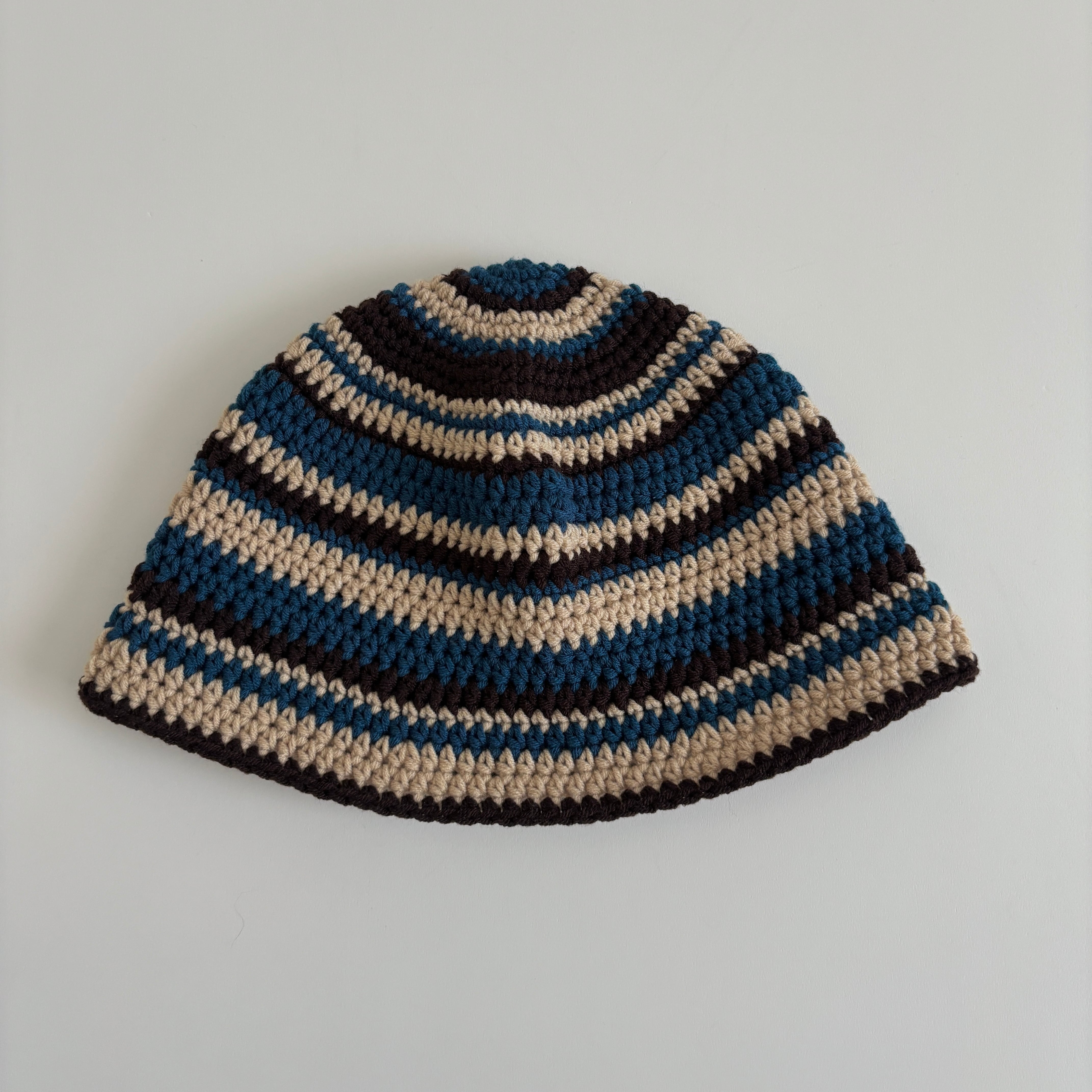 カジュアルな4色を合わせ、個性的に仕上げたバケットハットです。