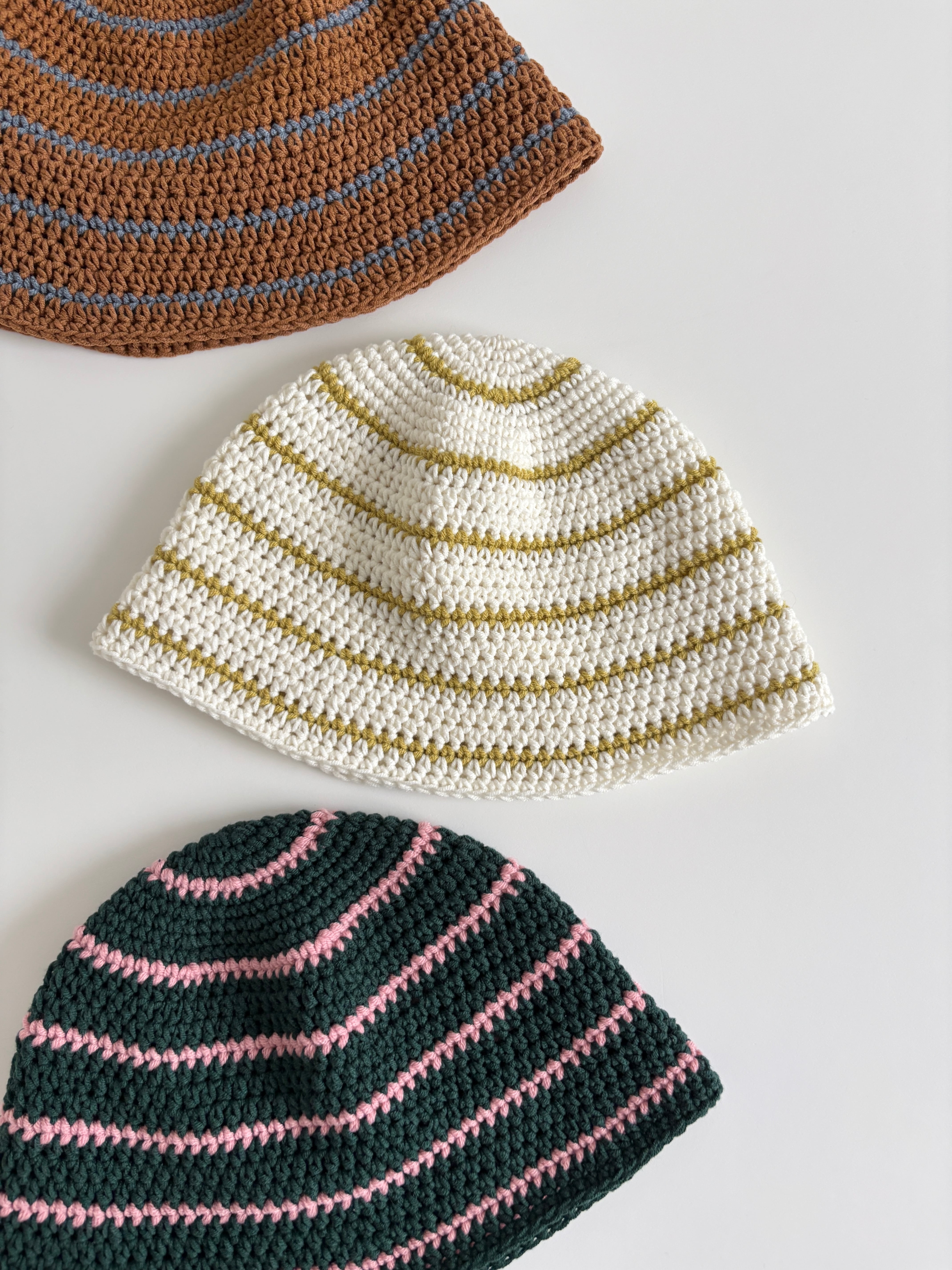 バイカラーでさりげない細めのボーダーデザインに仕上げた、使いやすいバケットハットです。